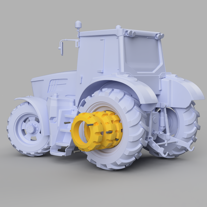Estabilidad desde la base. Contrapesas de hierro fundido diseñadas para montarse directamente en las ruedas del tractor. Amplia variedad de pesos, diámetros y anclajes. Máxima seguridad y rendimiento.