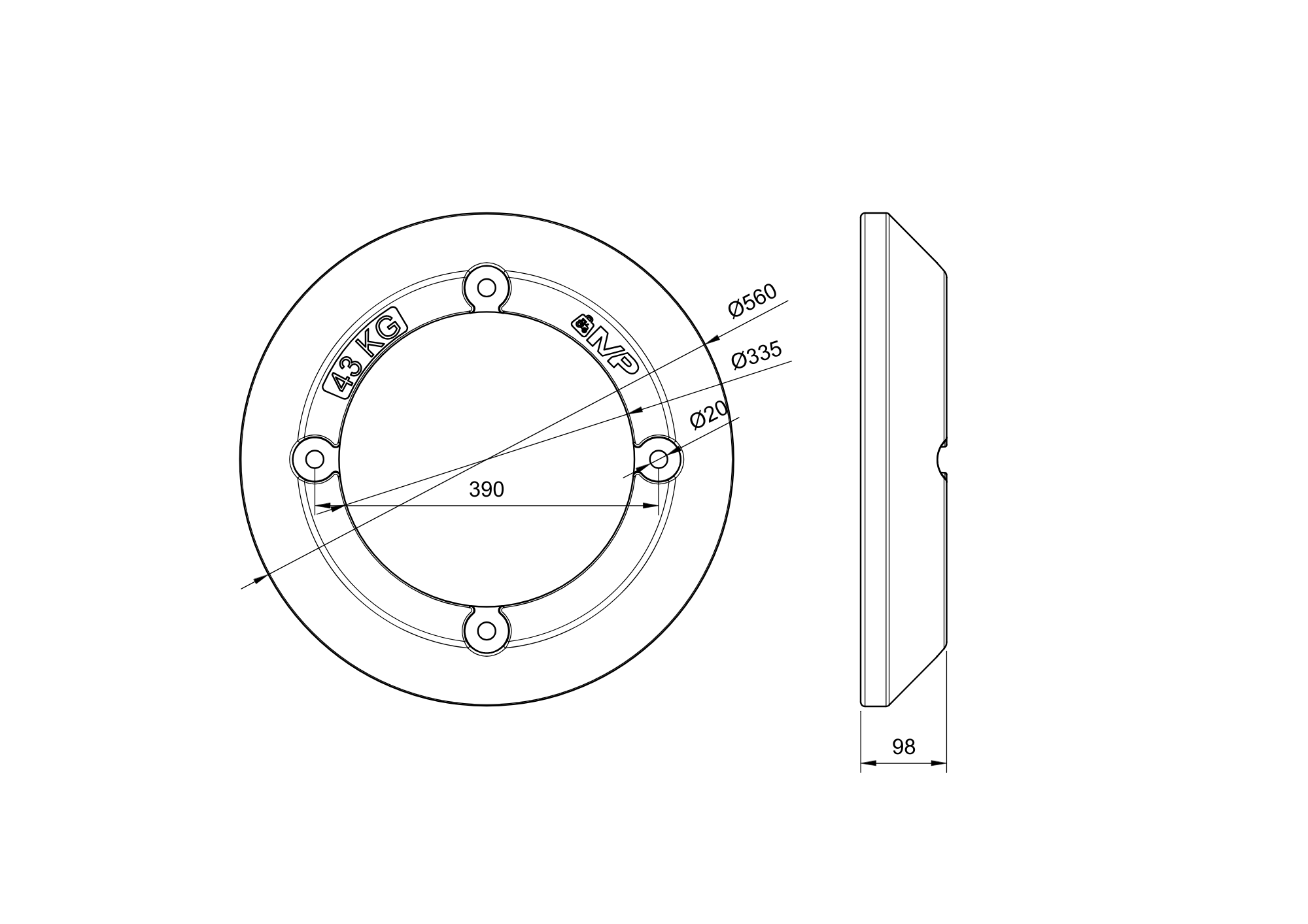 Contrapesa de rueda para tractor Same Deutz Fahr de 43 kg. Fabricada en hierro fundido. Pintada de negro o gris.