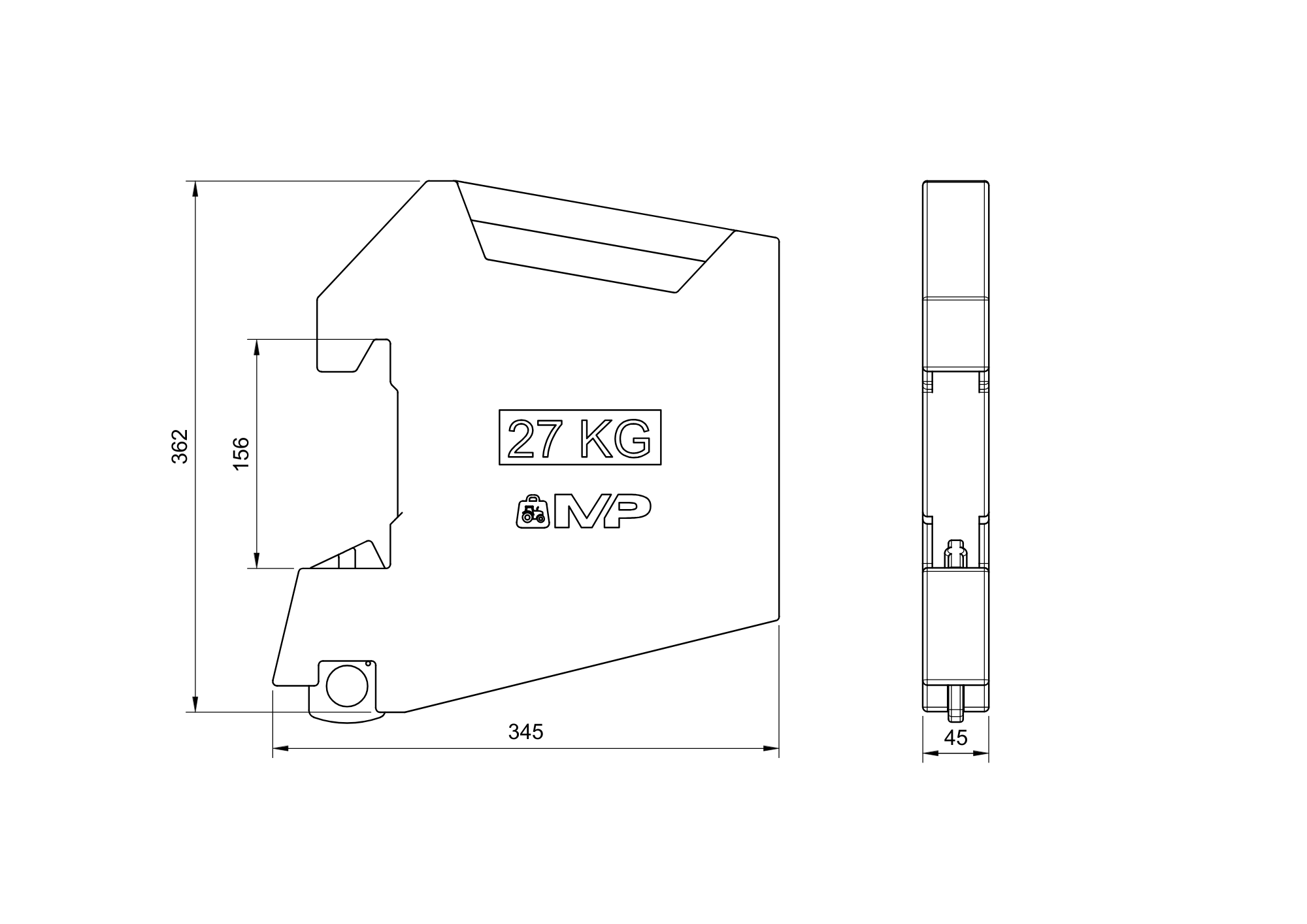 Contrapeso delantero para tractor Massey-Ferguson de 27 kg.