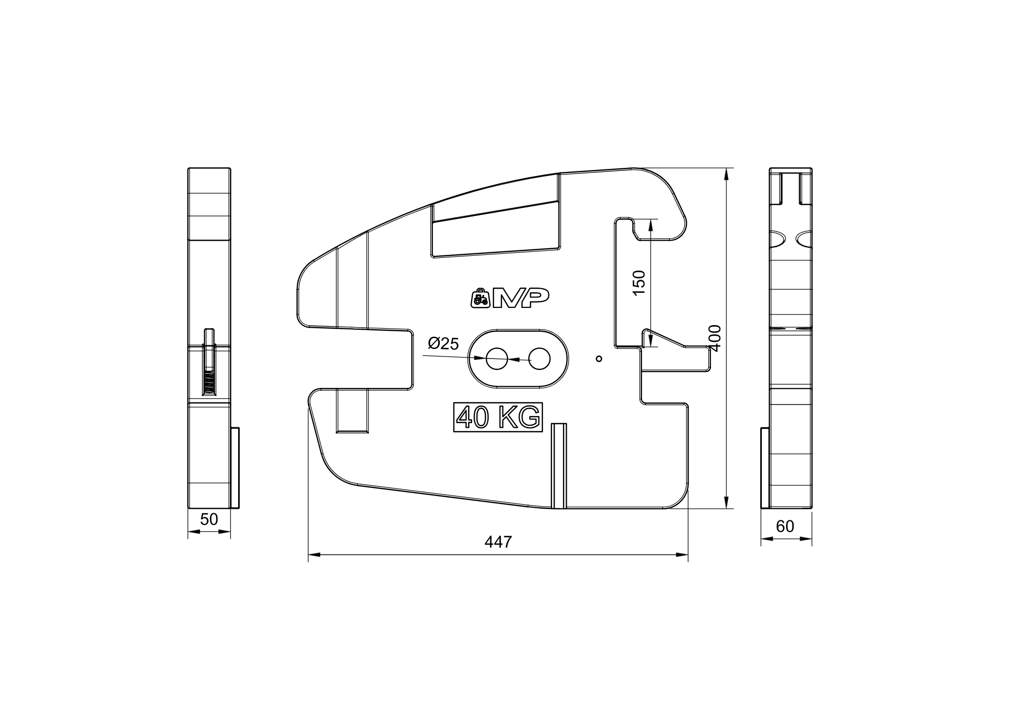 Contrapeso delantero para tractor Same Deuth Fahr con trinquete de 40 kg. Fabricado en hierro fundido. Pintada de negro o gris.